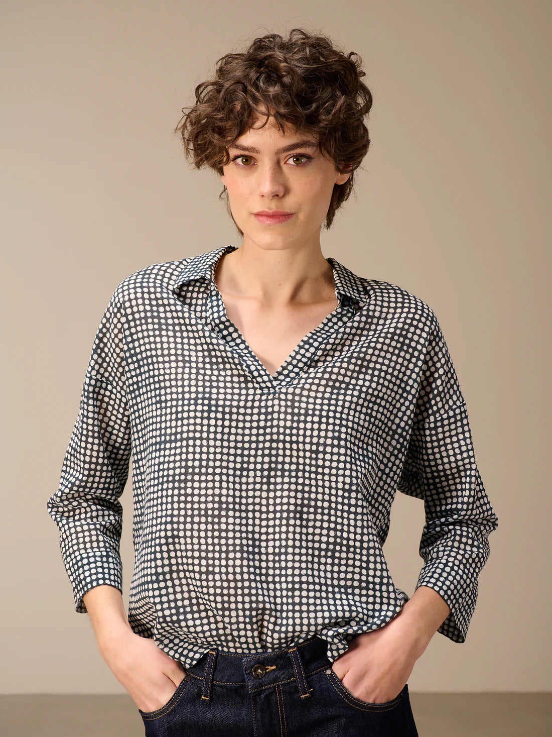 Chemise de tous les jours avec col en V et larges manches 3/4. En coton 100% bio de culture certifiée, idéal pour l'été.