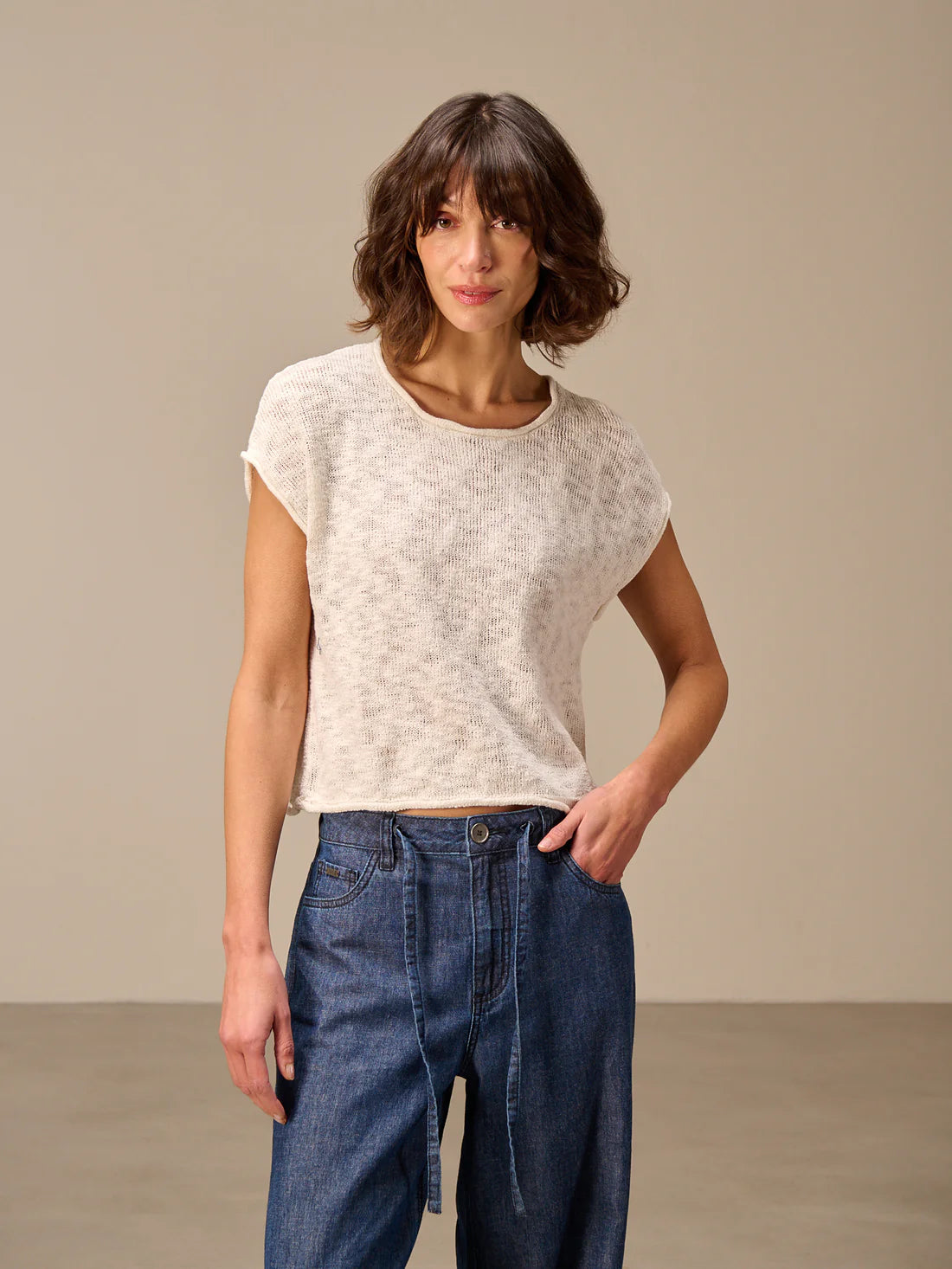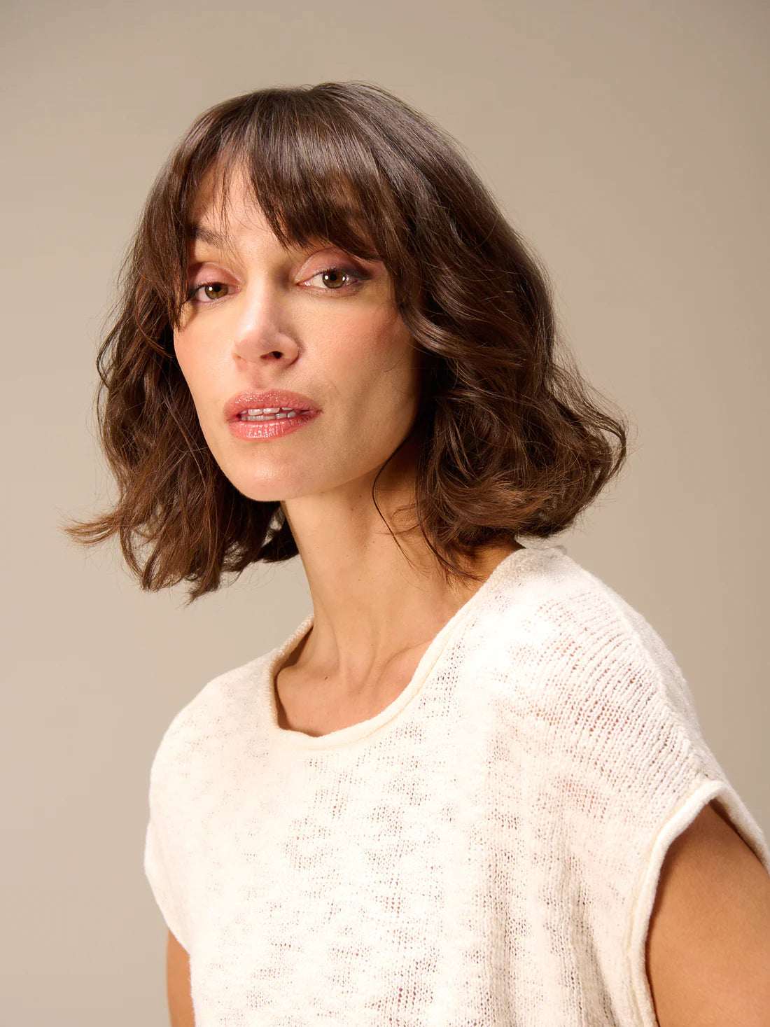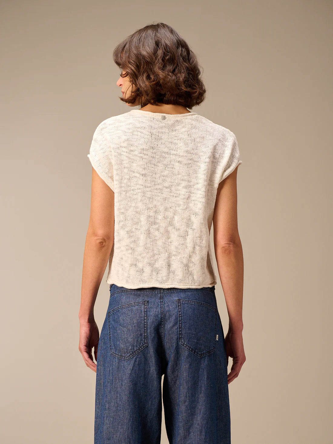Pull sans manches tendance à encolure ronde et épaules tombantes. Le fil structuré lui confère un aspect intéressant.