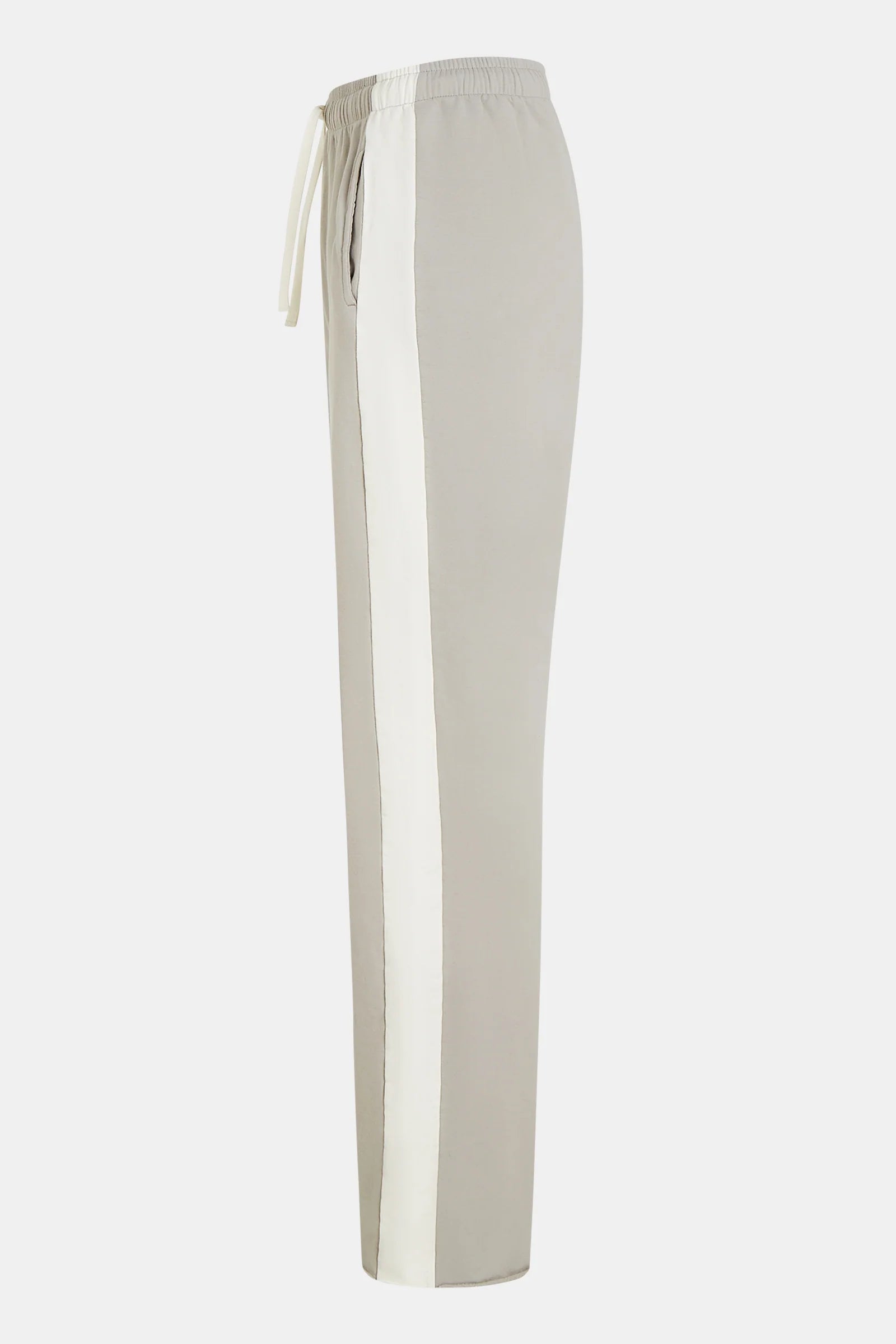 Rehaussez votre tenue décontractée avec ce pantalon coupe décontractée, orné de bandes latérales écrues contrastantes pour un look sport-chic. Doté d'une taille élastiquée et d'un cordon de serrage, il offre un confort optimal tout au long de la journée, tout en conservant un style moderne et décontracté.
