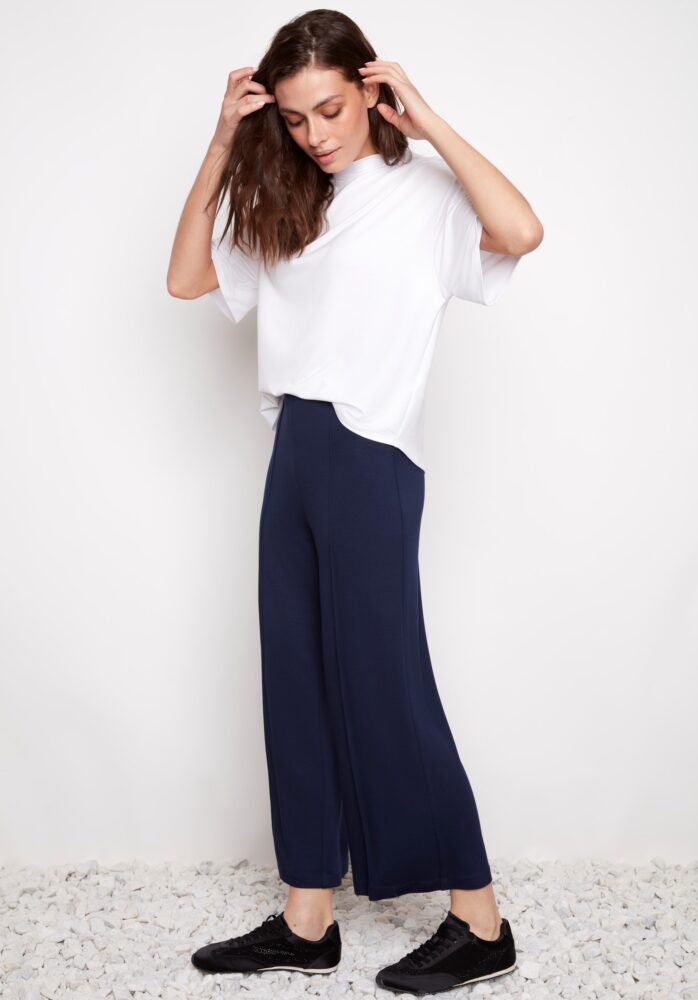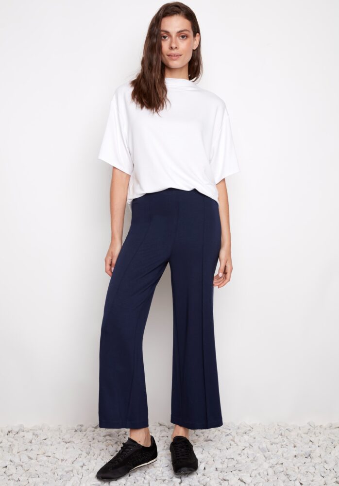 Une pièce luxueuse à la fois sophistiquée et facile à porter, ce pantalon court à jambes larges incarne l'élégance décontractée d'une Parisienne. Les coutures piqués apparentes rehaussent son allure aérienne d'une touche raffinée unique, lui conférant une sophistication urbaine et polyvalente.