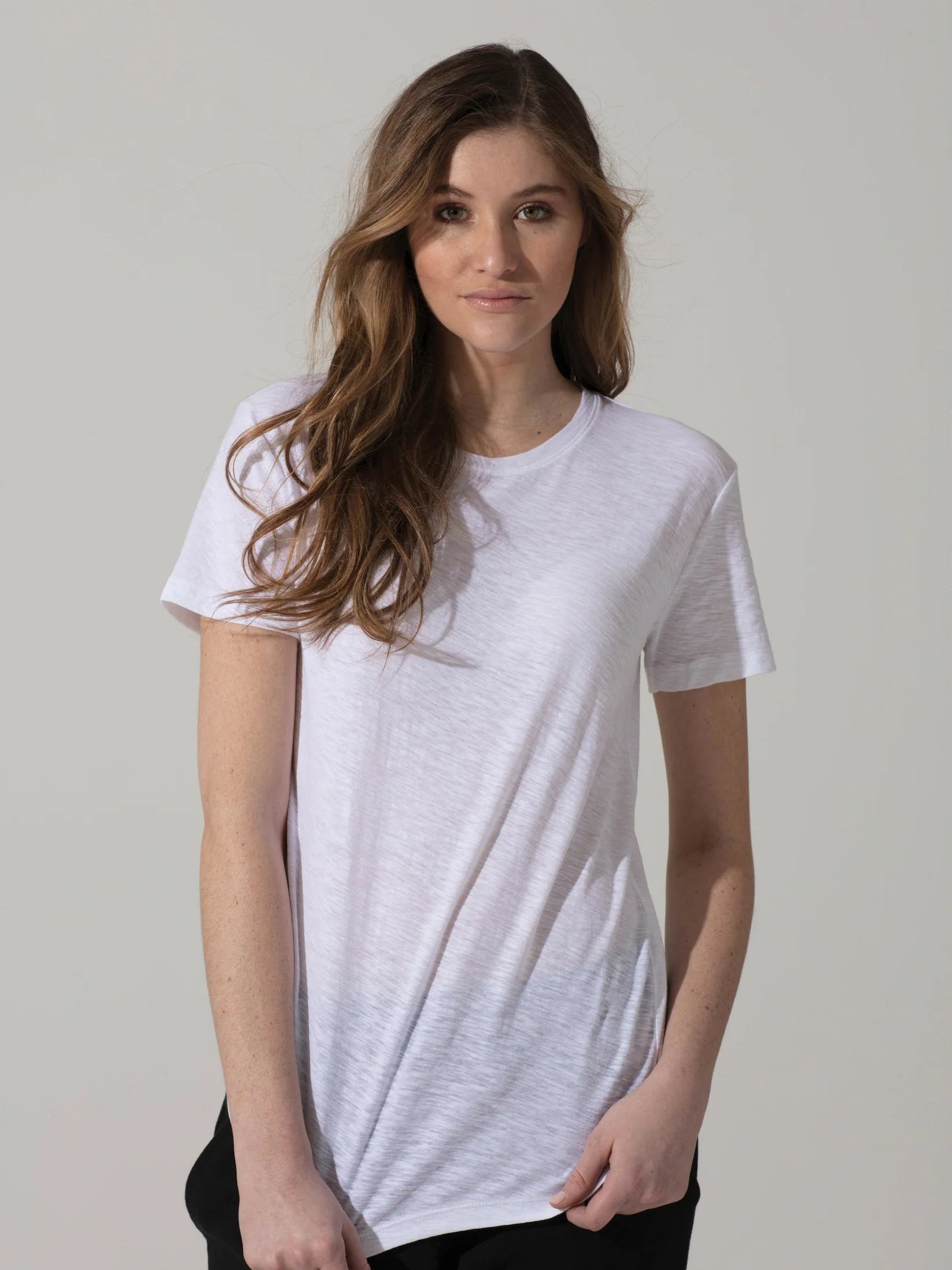 T-shirt à manches courtes et col rond confectionné en coton Pima péruvien de haute qualité.