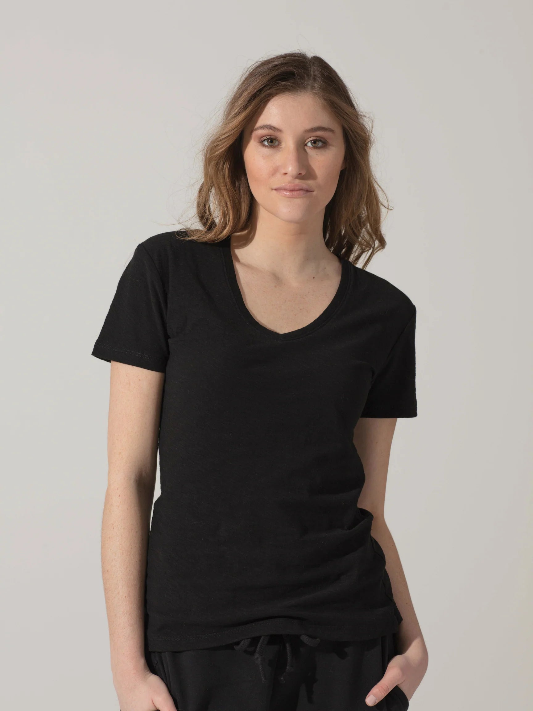 Notre magnifique t-shirt à manches courtes et col en V en coton Pima Sheer Slub offre un confort exceptionnel. Il est idéal pour vos activités quotidiennes.