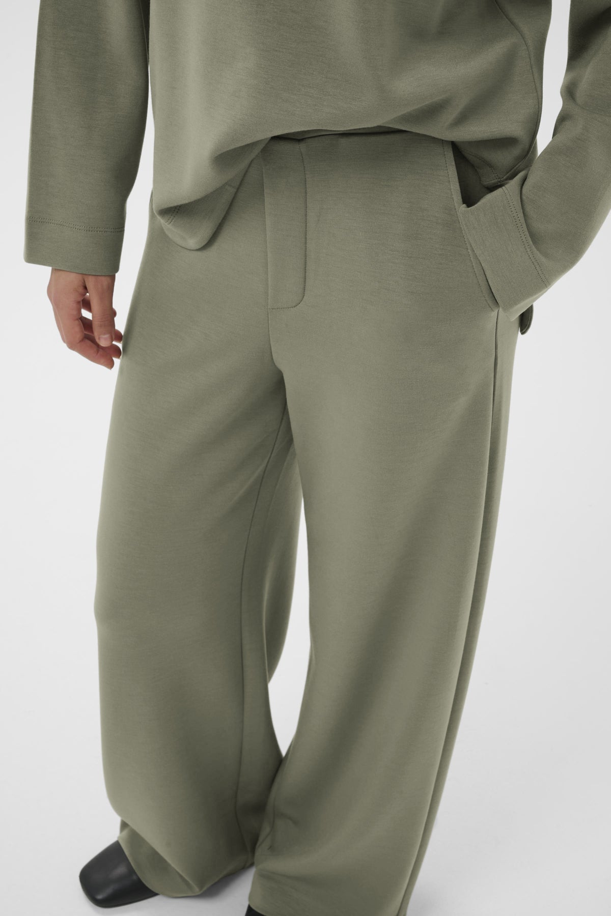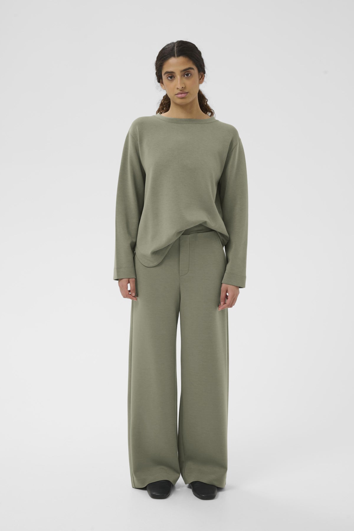 Ce pantalon à jambes larges allie une coupe décontractée à une taille légèrement cintrée pour un style polyvalent. Son tissu doux et sa longueur idéale offrent un confort optimal au quotidien et en toutes occasions. Parfait pour les contextes décontractés et professionnels.