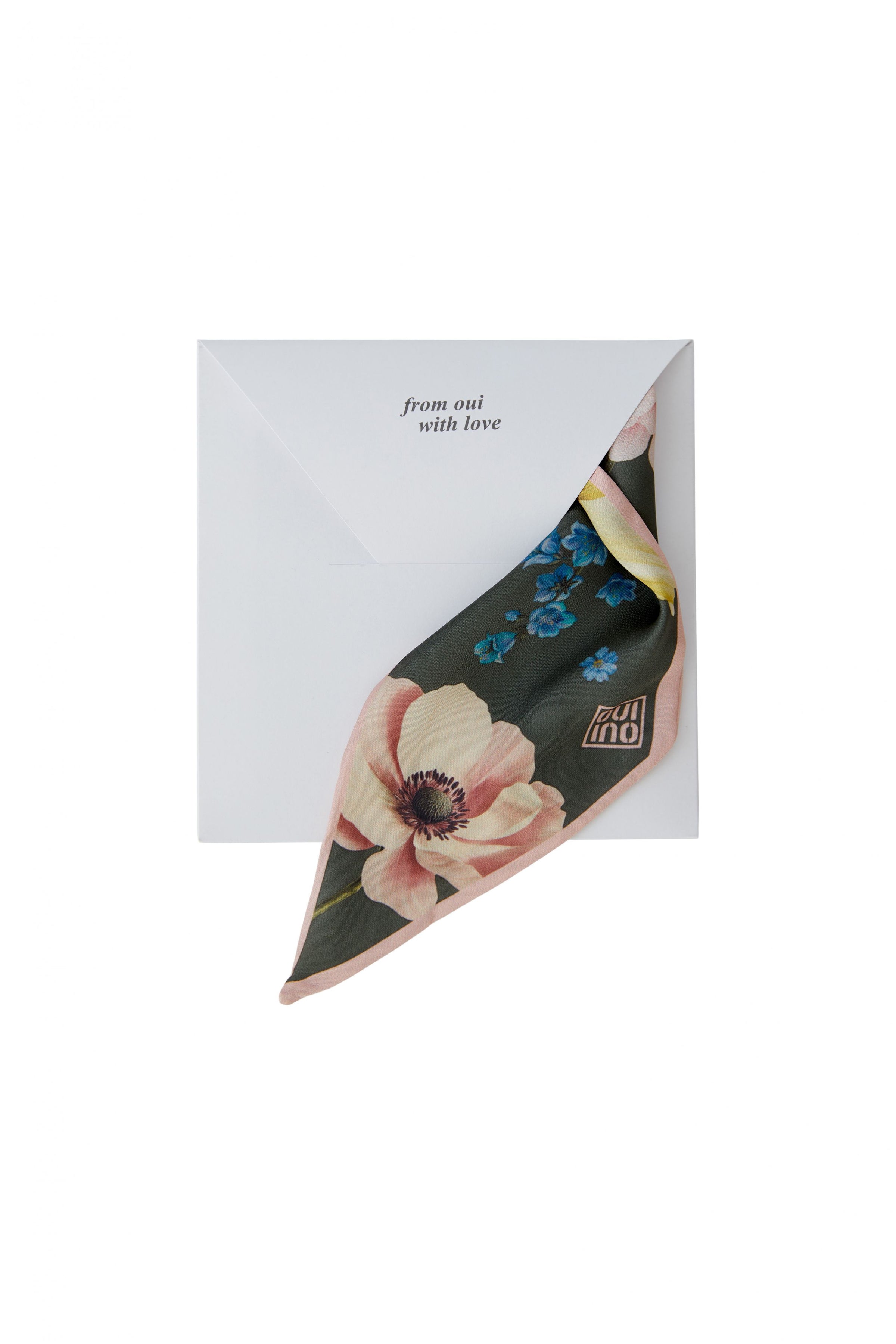 Petit foulard – version moderne du châle, à nouer élégamment autour du cou ou autour de l'anse du sac à main.
