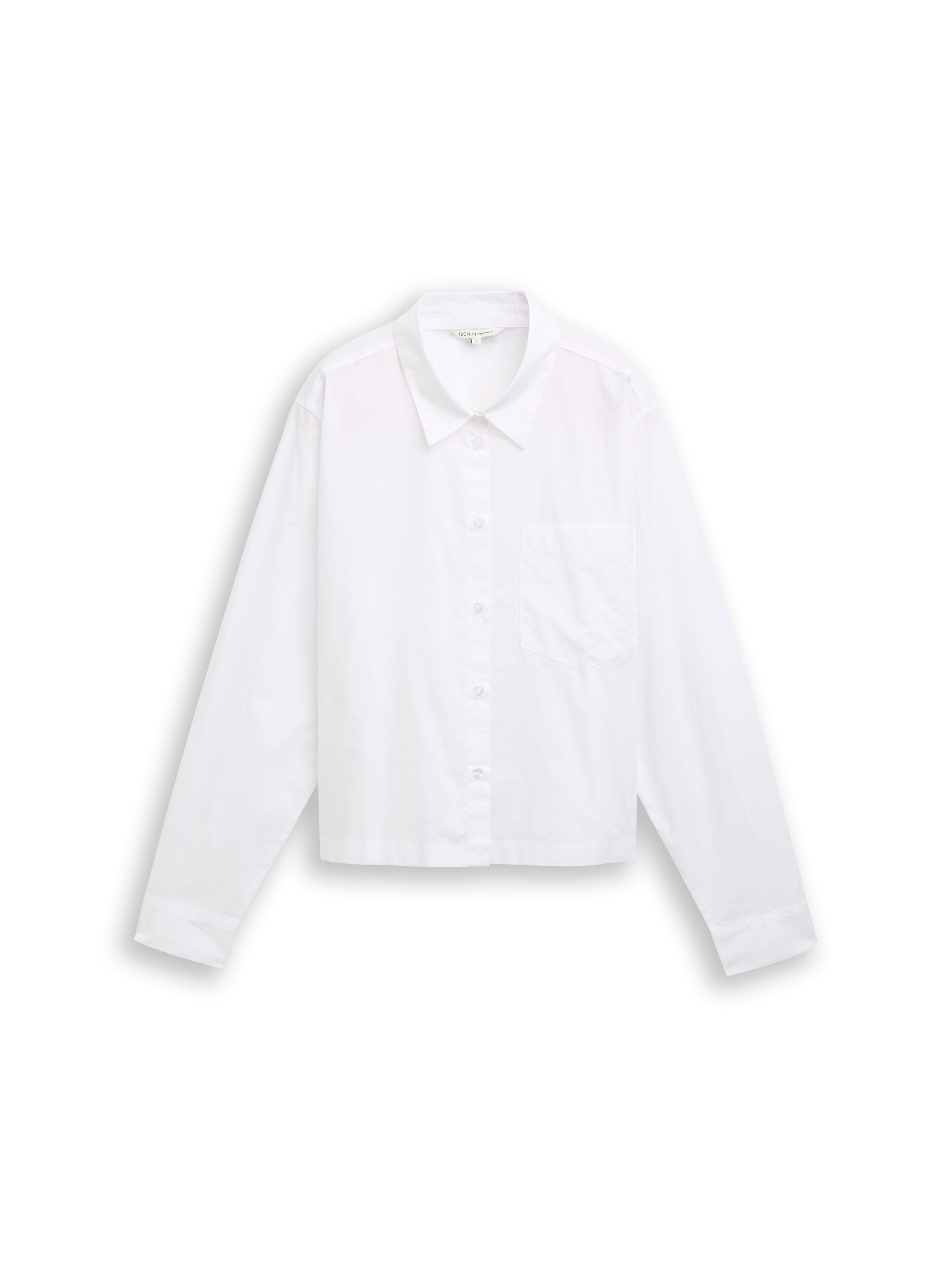 Chemisier en coton avec poche poitrine plaquée et couture d'épaule légèrement tombante. Confectionné en popeline tissée.  Poches à la poitrine.